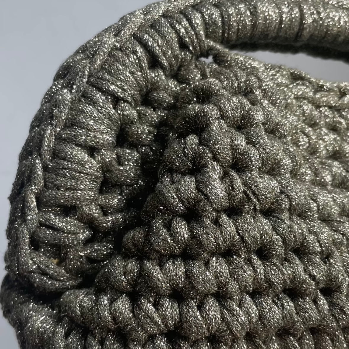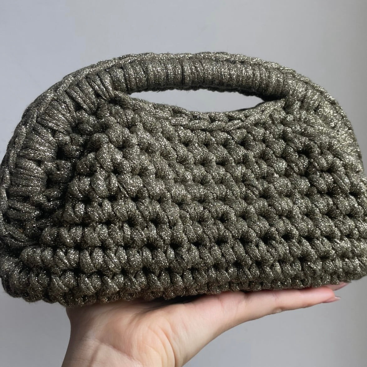 Il filato "Dark Gold" la rende la protagonista assoluta di qualsiasi look: un'affermazione di stile impeccabile che illumina con i suoi riflessi metallici e caldi ogni outfit, creando un contrasto deciso e chic che evoca un'allure di raffinatezza classica e senza tempo. La maniglia integrata e la chiusura magnetica celata completano un design curato nei minimi dettagli, creato per chi desidera distinguersi con una classe ineguagliabile e un'eleganza senza compromessi.