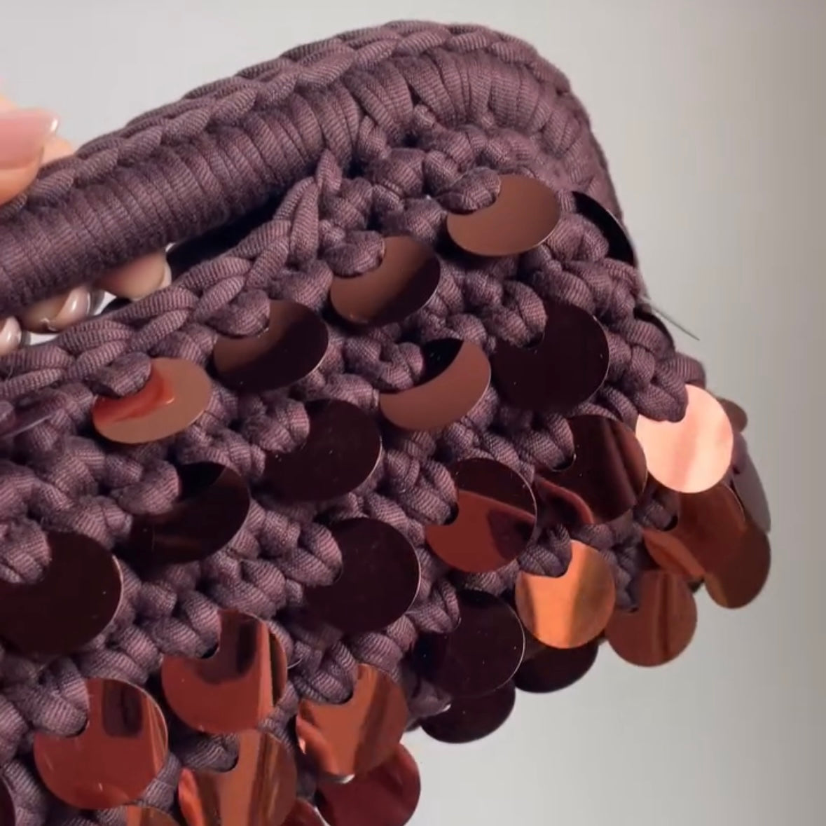 Materiale: Filato intrecciato a mano di alta qualità con paillettes applicate