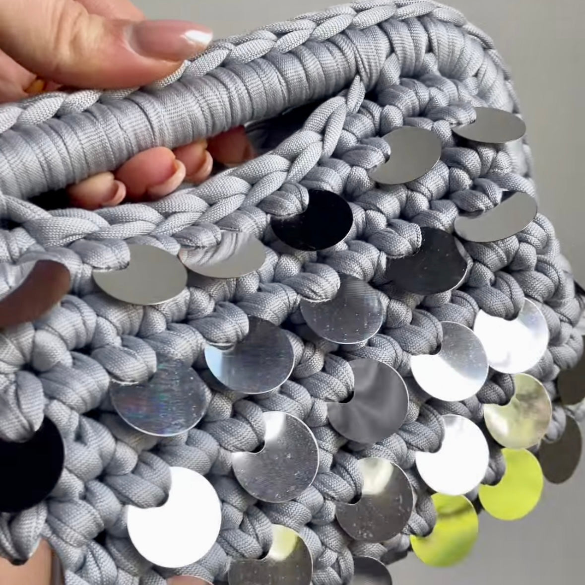 Materiale: Filato intrecciato a mano di alta qualità con paillettes applicate
