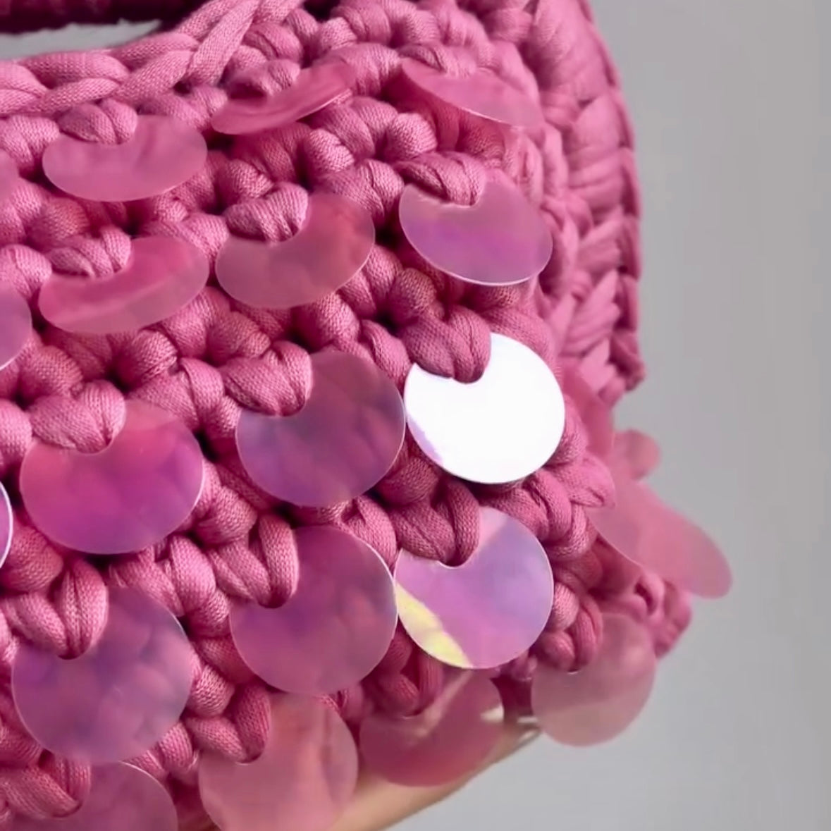 Materiale: Filato intrecciato a mano di alta qualità con paillettes applicate